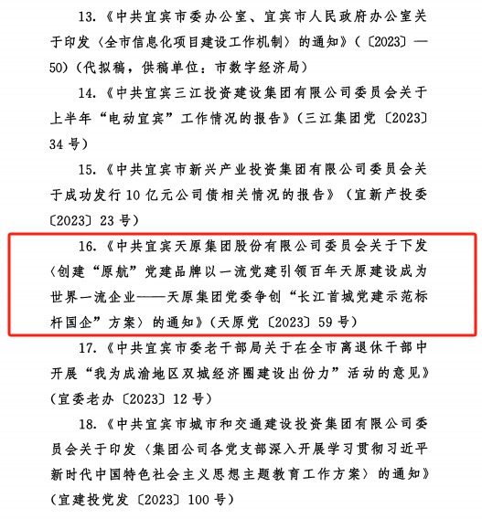 克日,中共宜宾市委办公室印发了《关于2023年度全市党委系统好公牍评选效果的转达》,必威官方首页官网集团党委参评公牍《中共必威官方首页官网委员会关于下发 <建设“原航”党建品牌以一流党建引领百年必威官方首页官网建设成为天下一流企业——必威官方首页官网集团党委争创“长江首城党建树模标杆国企”计划〉的通知》(必威官方首页官网党〔2023〕59号)荣获2023年度全市党委系统好公牍评选三等奖。