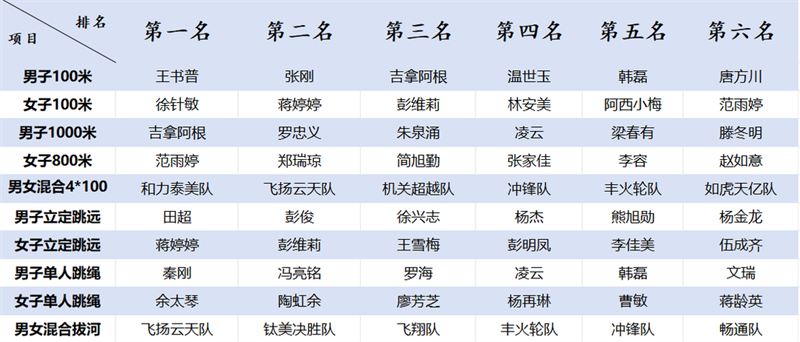 本次运动会设有男子100米、女子100米、男子1000米、女子800米、男女混淆4*100米、男子立定跳远、女子立定跳远、男子单人跳绳、女子单人跳绳、男女混淆拔河10个角逐项目 ,既有磨练团队协作能力的整体项目 ,也有展现小我私家风范的单项角逐 ,充分调动了员工们的加入热情 。